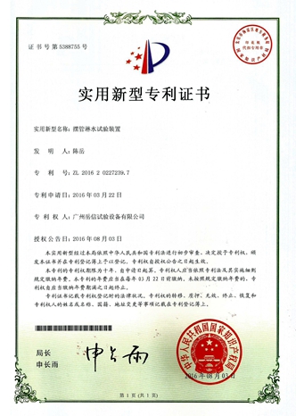 淋雨試驗(yàn)裝置-實(shí)用新型專利證書(shū)【岳信公司】