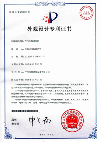 壓力浸水試驗(yàn)機(jī)-外觀專利證書(shū)【岳信公司】